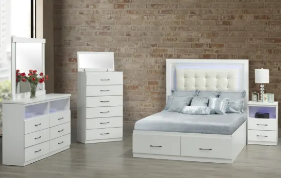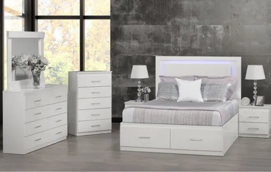 NB-191 White High Gloss Bedroom Set with LED Headboard