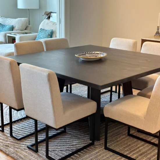 Square tables pair well with many dining room chairs styles. You can choose matching wooden dining table chairs for a clean look. Neutral tones like beige dining room chairs or grey dining room table and chairs work well in modern homes, while colorful dining room chairs add warmth and contrast.