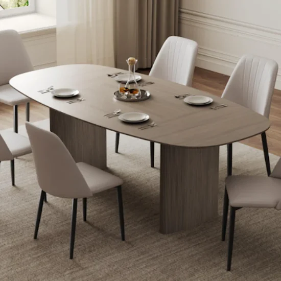 An oval dining table set is a good balance between round and rectangular tables. It fits more people but still feels soft and open.